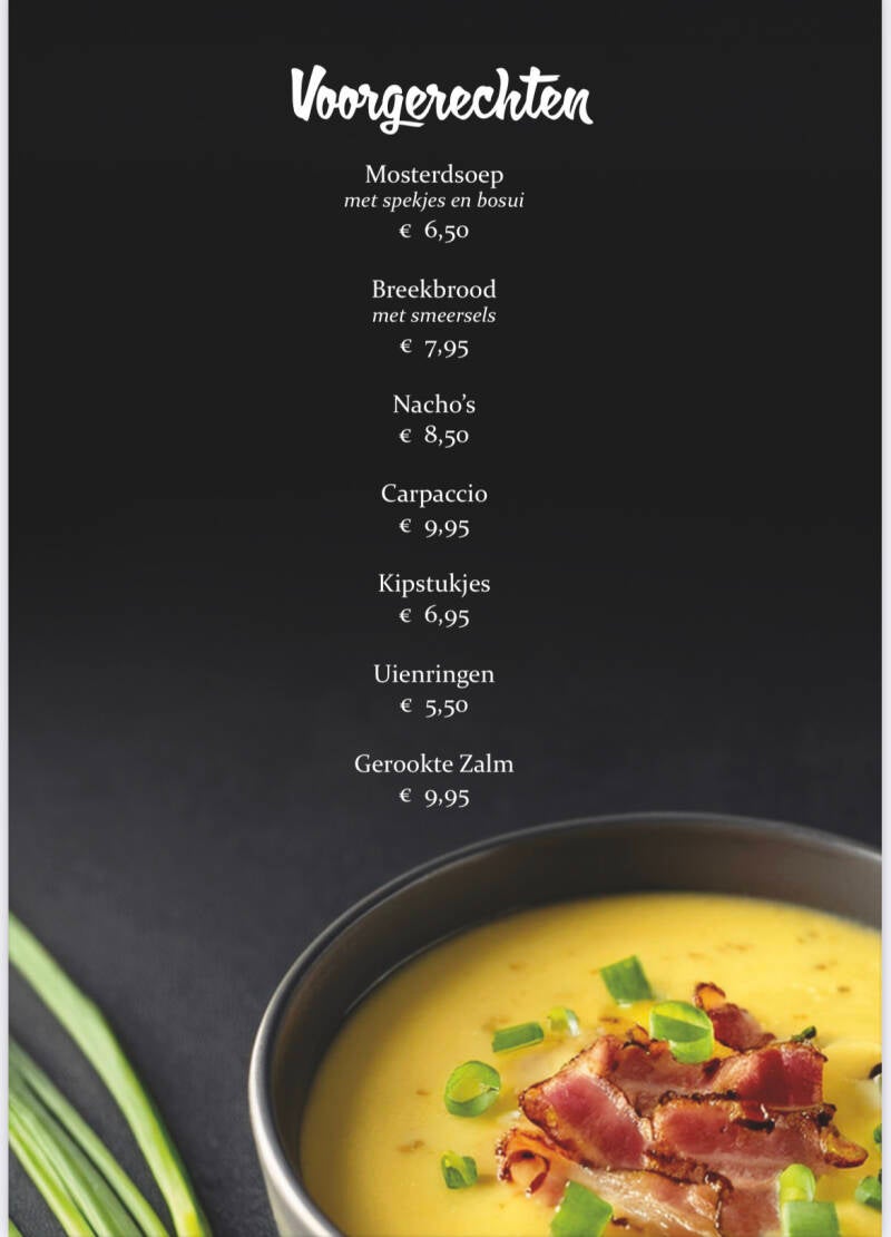 Ontdek de smaakvolle gerechten en verfrissende drankjes op de menukaart van Restaurant Café Ricky's.